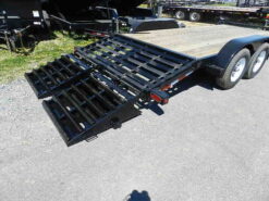 Mega Ramps, Self Cleaning Beavertail, Electric Brakes all Four, Deck 83W” x 18’L, 5200lb Axles, Tires 22575R15 Radials, 2-5/16″ Adjustable Coupler, LED Lights, Adjustable Coupler, 8K Jack, Removable Fenders, 36″ Beavertail, 36″ Mega Ramps