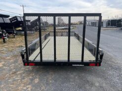 Deck 81″W x 1’L, Tube Top Rail, Rear Landscape Gate, Spare Tire Carrier, Rub Rail, Stake Pockets, Wood Deck, Boxed In LED Lights, 2 5/16″Coupler, A-Frame Jack, Tires 205/75/R15 Radials, Spring Assisted Rear Gate, EZ Lube Hubs, 3500lb Lippert Spring Axles, Side ATV Ramps 12″ W x 60″ L
