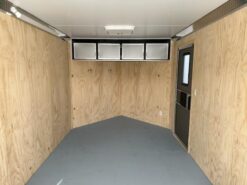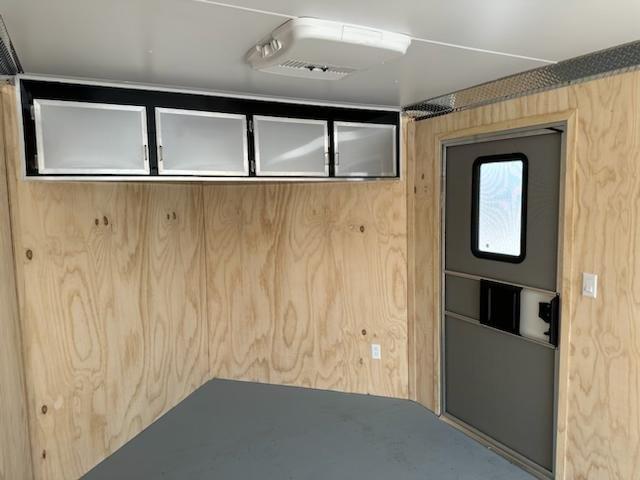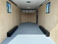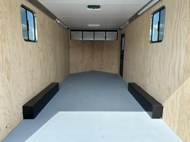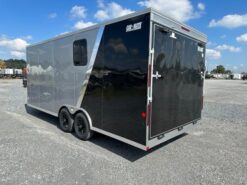 Ramp Door, Side Door, Electric Brakes, Deck 96″W x 20’L Plus 4′ V-Nose, Rear Door 94″W x 78″T, RV Side Door 36″W x 73″T, Interior Height 86″, 6000lb Torsion Axles, Tires ST22575R15 Radials, 2-5/16″ Coupler, One Piece Aluminum Roof, 3/4″ Painted Plywood Floor, 110 Light Package, White Vinyl Ceiling, 6″ Added Height, Two-Tone, Black Aluminum Wheels, Windows, A/C Unit