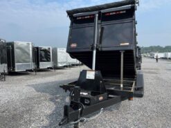 Barn Door Gate, 6′ Ladder Ramps, D-Rings, Electric Brakes, Deck 77″W x 14’L, 4′ Sides, 7000lb Leaf Spring Axles, 235/85/R15 LRG Radial Tires, 2-5/16″ Coupler, Deep Cycle Battery, Power Up, Gravity Down, Tarp Kit, Spare Tire Mount, 10 Gauge Floor, 12 Gauge Sidewalls, Battery Charger, Telescopic Cylinder, 12K Dropleg Jack, Spare Tire